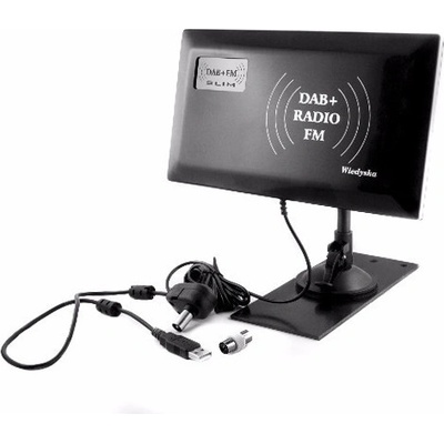 Typ: rádiová anténa pokojová - venkovní DAB+FM SLIM Určení: příjem pozemního rádiového signálu (FM) a pozemního digitálního rádiového signálu (DAB+) Polarizace: vertikální nebo horizontální Anténní kabel 75 Ohm s koaxiální zástrčkou 9,5 mm a napájecí zástrčkou z USB Má...