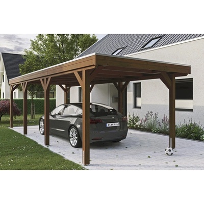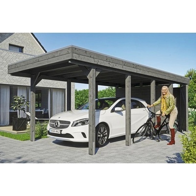 Přístřešek na auto SKAN HOLZ Friesland - Přístřešek na auto s plochou střechou - Vnější rozměry 397 x 708 cm - Konstrukce z impregnovaného dřeva jehličnanů - Barevná úprava v...