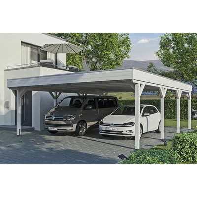 Přístřešek na auto SKAN HOLZ Grunewald - Přístřešek na auto s plochou střechou - Vnější rozměry 427 x 796 cm - Masivní konstrukce z vysoce kvalitního lepeného dřeva (BSH...
