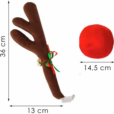 Vánoční dekorace na auto v podobě sobího paroží, červeného nosu a se stužkou s rolničkami. Snadná montáž a demontáž bez poškození karoserie. Vhodné pro všechny typy aut. Snadno...