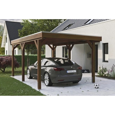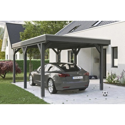 Přístřešek na auto SKAN HOLZ Friesland - Přístřešek na auto s plochou střechou - Vnější rozměry 397 x 555 cm - Konstrukce z impregnovaného dřeva jehličnanů - Barevná úprava v...