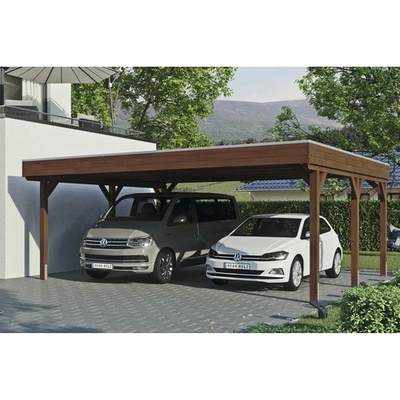 Přístřešek ba auto SKAN HOLZ Grunewald - Přístřešek na auto s plochou střechou - Vnější rozměry 622 x 554 cm - Masivní konstrukce z vysoce kvalitního lepeného dřeva (BSH...