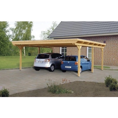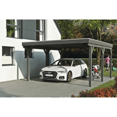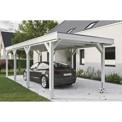 Přístřešek na auto SKAN HOLZ Friesland - Přístřešek na auto s plochou střechou - Vnější rozměry 314 x 708 cm - Konstrukce z impregnovaného dřeva jehličnanů - Barevná úprava v...