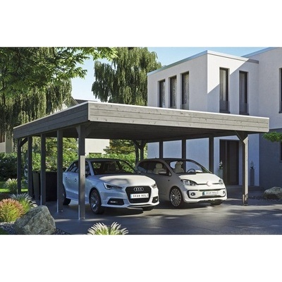 Přístřešek na auto SKAN HOLZ Grunewald - Přístřešek na auto s plochou střechou - Vnější rozměry 427 x 554 cm - Masivní konstrukce z vysoce kvalitního lepeného dřeva (BSH...