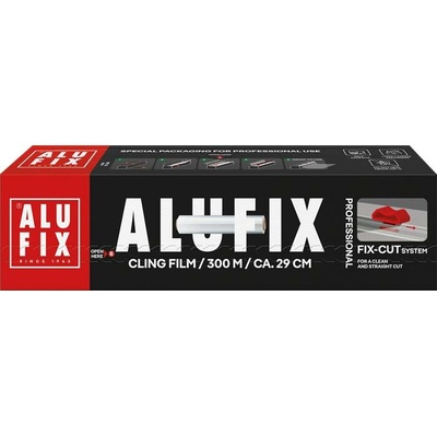 Potravinová fólie, 29 cm x 300 m, ALUFIX CB300306FIXCUTUNINEW ALUFIX PVC potravinová fólie ve vylepšené krabici s řeznou hranou pro pohodlné a rychlé použití. Rozměr: 29 cm x...