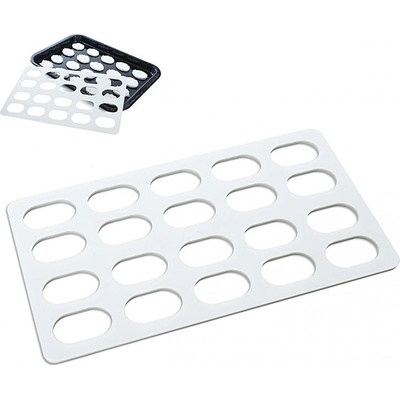 FORMA/ŠABLONA NA STŘEDNÍ LASKONKY Plastová forma/šablona na 20 kusů laskonek. Rozměr laskonky: 4,5x3 cm Výška laskonky: 0,4 cm Počet kusů na formě: 20 ks