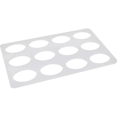 FORMA/ŠABLONA NA LASKONKY Plastová forma/šablona na 12 kusů laskonek. Rozměr laskonky: 6x4 cm Výška laskonky: 0,4 cm Počet kusů na formě: 12 ks