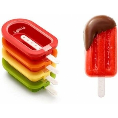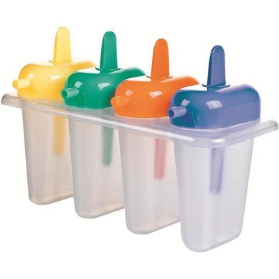 \nForma na nanuky vytvoří v mrazničce domácí ovocné i smetanové zmrzlinky.4 tvořítka s barevnými víčky. Materiál: plast. Rozměry: (šxhxv): 12x11x15 cm.\n