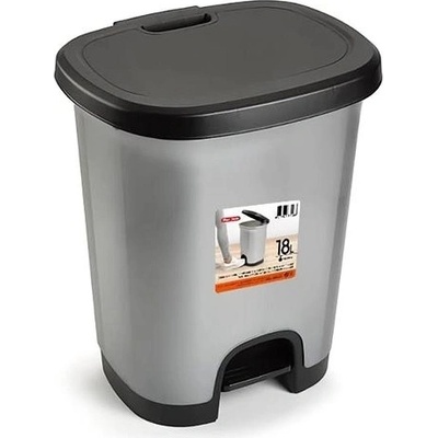 Plastic Forte COLOR Koš na odpad 18 l ČERNO-STŘÍBRNÝ bez vložky s pedálem