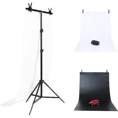 Stojanová černá hliníková konstrukce na dvě papírové nebo textilní pozadí, která se skládá ze dvou studiových stojanů s výškou od 95 do 270 cm a dvou max 6kg nosných tyčí s...