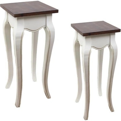 Sada vkusných dřevěných odkládacích stolků v provensálském stylu. Malý stolek má rozměry 23 x 23 cm, výšku 62 cm. Velký stolek má rozměry 35 x 35 cm, výšku 80 cm. Barva :...