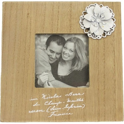 Fotorámeček s dekorací. Rozměry: 15,5 x 15,5 x 2 cm. Materiál: dřevo. Barva: hnědá, přírodní. Údržba výrobku: Utřít hadříkem.