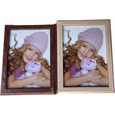 Dřevěný fotorámeček. Fotorámeček má rozměri na fotografii 12 x 16,5 cm. Rozměry: 20,8 x 2,2 x 25,7 cm. Materiál: dřevo, sklo. Barva: hnědá. Tento výrobek není hračka. Určeno...
