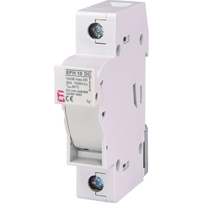 002540201 Spodek pojistkový EFH 10 DC 1p, ETI. Součástí odpínače je pojistka ETI 12A/1000VDC – pojistka je vložena v odpínači. Obsah balení: 1x ETI pojistný odpínač EFH 10...