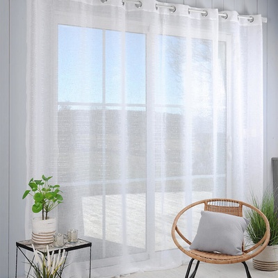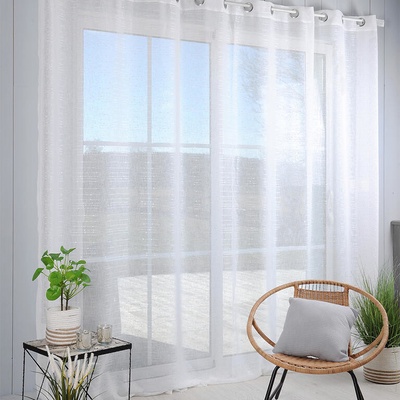 Hladká voálová záclona velikosti XXL je skvělým řešením pro francouzské okno. Bílá barva rozzáří místnost a propustí světlo dovnitř pokoje, vytkávané stříbrné nitky dodají...