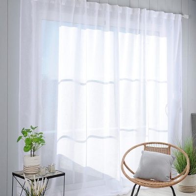 Hladká voálová záclona velikosti XXL je skvělým řešením pro francouzské okno. Bílá barva rozzáří místnost a propustí světlo dovnitř pokoje, tkaný dojem dodá pokoji útulný...
