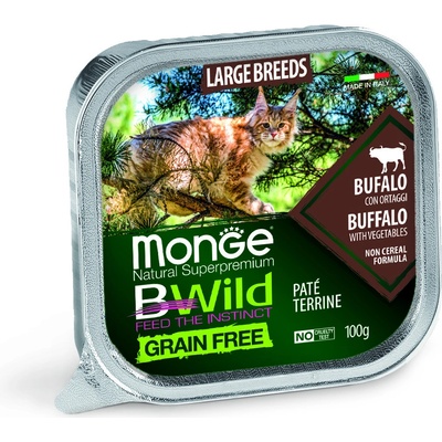 Paštika MONGE Cat BWild Grain Free Adult Large Breed buvol se zeleninou 100g Paštika pro kočky - velká plemena Specifikace produktu - grain free buvol se zeleninou (zelené...