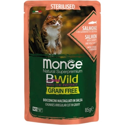 Kapsička MONGE Cat BWild Grain Free Sterilised divoké prase se zeleninou 85g Kapsička pro kočky - kastrované Specifikace produktu - grain free kanec se zeleninou (zelené...