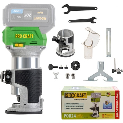 Aku frézka horní Procraft POB24 příslušenstvím 3v1 (bez baterie a nabíječky) Aku frézka horní Procraft POB24 bb – výkonný stroj s bezuhlíkovým motorem, regulací otáček (16...