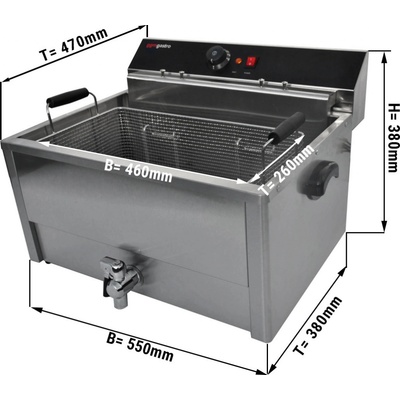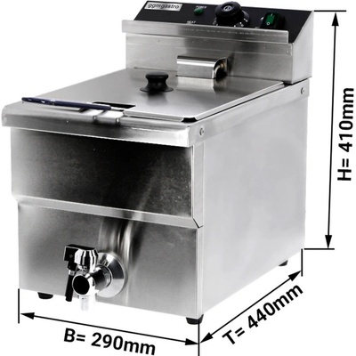 Provedení - Vysoce kvalitní elektrická fritéza - Vynikající pro profesionální použití - Stolní přístroj - Hladký povrch - S vypouštěcím kohoutem - Kapacita: max. 20,4 L -...