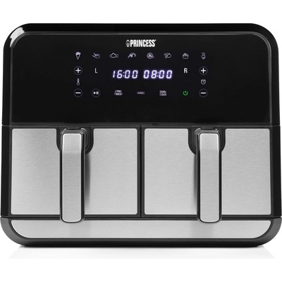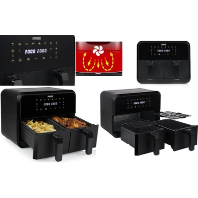 Horkovzdušná fritéza PRINCESS 182074 Nabízí 2 koše, které lze nastavit jak nezávisle na sobě, tak současně Velký objem pro přípravu jídla pro celou rodinu díky objemu 8 l (2x 4 l) Celková kapacita až 2 kg potravin Příprava chutných pokrmů bez použití oleje nebo jiného...