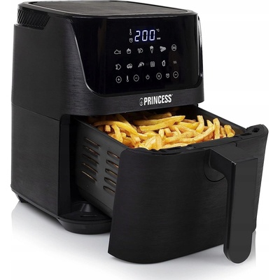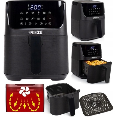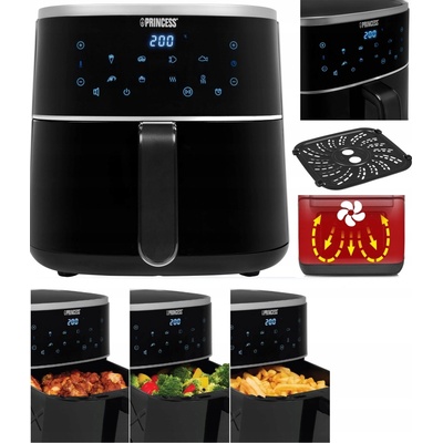 Luxusní horkovzdušná fritéza Princess 182060 o objemu 5,5 L s příkonem 1700 W pro rychlou přípravu pokrmů bez použití oleje. Časovač. Chladné zóny. Teplota od 80-200°C. Vyjímatelná nádoba s nepřilnavým povrchem. Příkon: 1700 W.