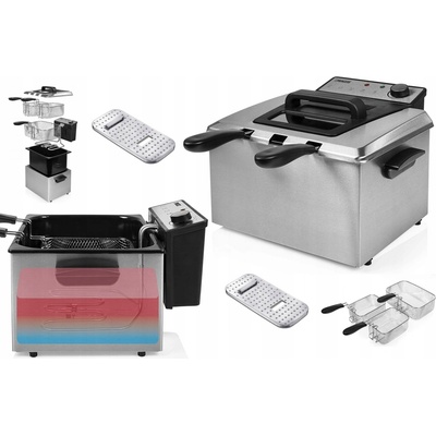 mechanické ovládání, smaltovaná, včetně chladných zón, regulace teploty, 1 program, vyjímatelná nádoba součástí, příkon 3600 W, objem nádoby 6 l, max. náplň oleje 6 l, 2 fritovací koše, nastavitelná teplota od 80 do 190 °C, délka kabelu 0,9 m, hmotnost 4,97 kg, rozměry...