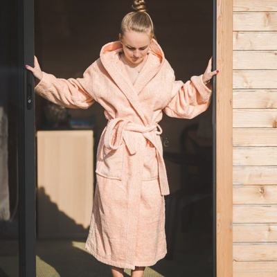 Dámský saunový župan je vyrobený ze 100% froté bavlny. Tento materiál je specifický tím, že výrobky z něj jsou velice příjemné na nošení. Župan do sauny v broskvové barvě je...