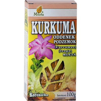 Curcumae longa rhizoma. . Droga obsahuje vonnou silici a krásně žluté barvivo kurkumin (anglicky turmerik), dobře rozpustné v etanolu. Dále jsou zde obsaženy seskviterpeny,...