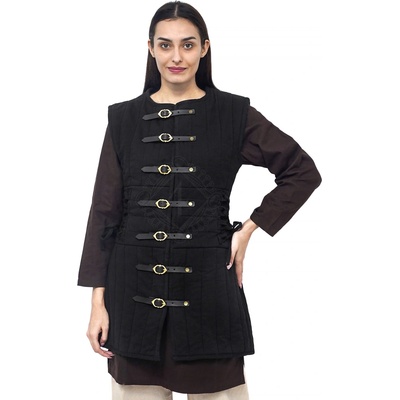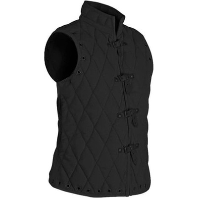 Gambeson bez rukávů (také známý jako krzno nebo prošívanice) je kabátec z prošívané látky, který se ve středověku nosil pod zbrojí - ať kroužkovou či plátovou. Vhodné pro LARP, dřevárnu či divadlo! Gambeson - vesta je černé barvy a zapíná se na přezky (kožené řemínky...
