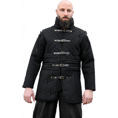 Dlouhý gambeson s přezkami a odnímatelnými rukávy, černý Svrchní materiál: plátno o gramáži 330 g/m2 ze 100% bavlny Vnitřní podšívka: 100% bavlna Výplň (čalounění): 100%...