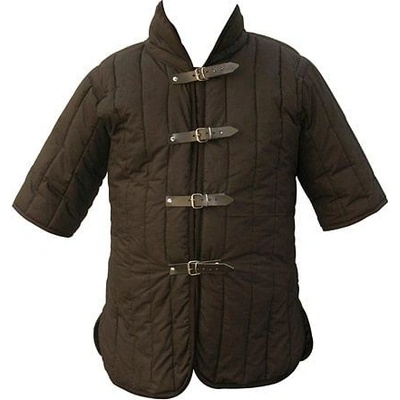 Jednoduchý gambeson s krátkými rukávy a límcem. Zapíná se na přezky, je ideální pod zbroj nebo jako základ lehkého bojového kostýmu pro dřevárnu či larp, neboť není tak bytelně...