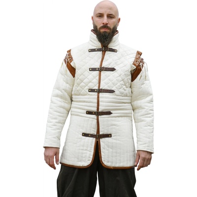 Prošívaná vesta (gambeson) bez rukávů. Je opatřená přezkovým zapínáním, na spodním lemu a kolem rukávů má kroužky, takže lze přivázat rukávy nebo spodní část. Součástí je i...