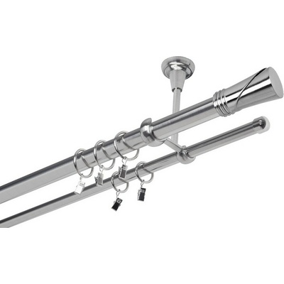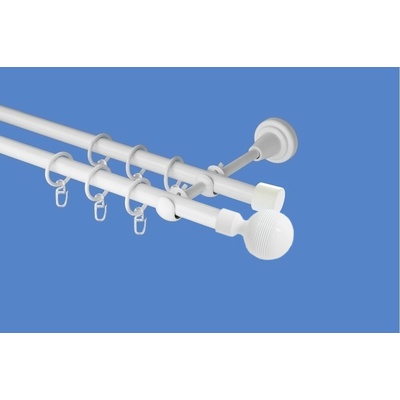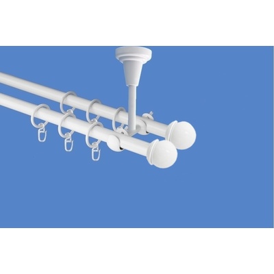 OK-GarnýžeCZ Garnýž kovová dvouřadá 19mm Gabi bílá 260 cm do stěny / kroužky s háčkem