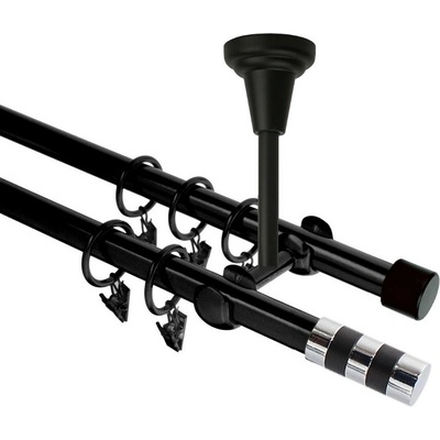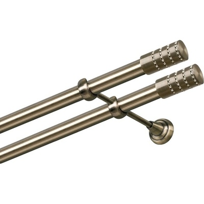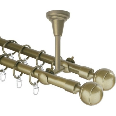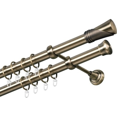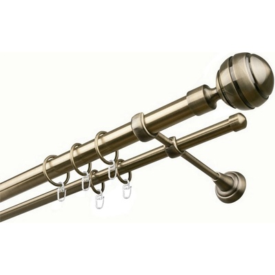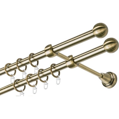 OK-GarnýžeCZ Garnýž kovová dvouřadá 25/25mm Duncan mosaz 300 cm do stěny / kroužky s háčkem