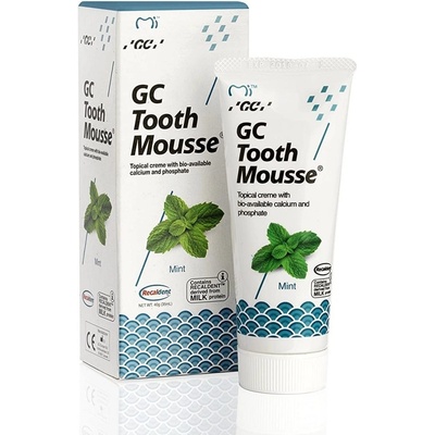 Detailní popis produktu GC Tooth Mousse dentální krém BIOAKTIVNÍ DENTÁLNÍ KRÉM S VÁPNÍKEM A FOSFÁTY Dentální krém obsahuje formuli RECALDENT, derivát mléčného proteinu, kaseinu (CPP-ACP: Casein Phosphopeptide – Amorphous Calcium Phosphate). Při aplikaci v ústech se...