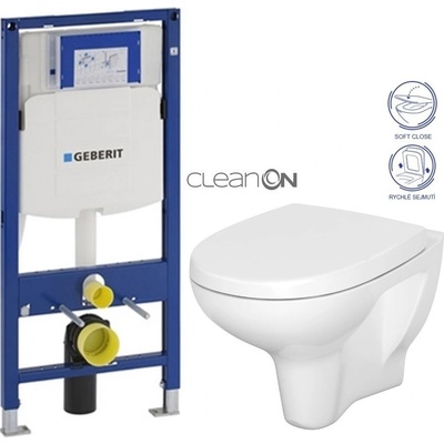 Sada předstěnové instalace, klozetu, WC sedátka a ovládacího tlačítka Obsahuje předstěnový instalační modul Geberit Duofix (111.300.00.6), se splachovací nádržkou pod omítku...