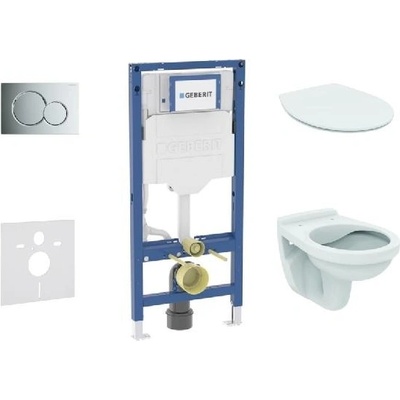 Set předstěnové instalace, klozetu a sedátka Ideal Standard, tlačítka Sigma01, lesklý chrom Obsahuje - předstěnový instalační prvek Geberit Duofix, se splachovací nádržkou...
