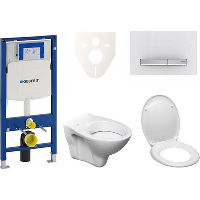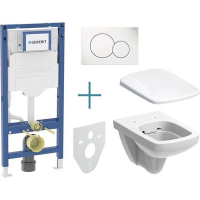 Sada předstěnové instalace, klozetu, WC sedátka a ovládacího tlačítka Obsahuje předstěnový instalační modul Geberit Duofix (111.300.00.6), se splachovací nádržkou pod omítku...