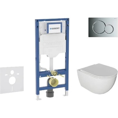 Sada předstěnové instalace, klozetu, WC sedátka a ovládacího tlačítka Obsahuje Předstěnový instalační modul Geberit Duofix, se splachovací nádržkou pod omítku Sigma 12 cm...
