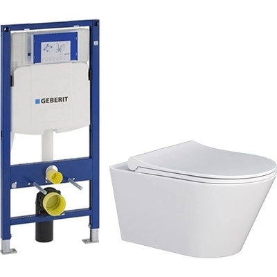 Set obsahuje předstěnový instalační modul Geberit Duofix se splachovací nádržkou pod omítku keramický závěsný klozet kielle Oudee se sedátkem SoftClose ovládací tlačítko...