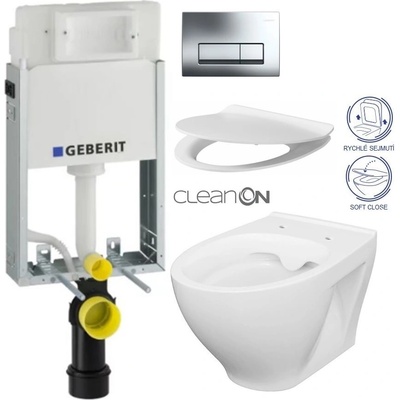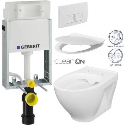 Set obsahuje - předstěnový instalační modul Geberit Kombifix se splachovací nádržkou pod omítku - keramický závěsný kompaktní klozet kielle Gaia se sedátkem SoftClose -...