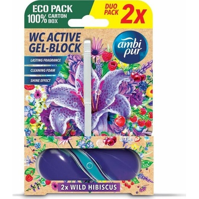 Ambipur WC Active gelový blok Divoký ibišek 2x45 g Udržujte svoji toaletu svěží a hygienicky čistou s gelovým WC blokem Ambipur WC Active. Jeho nová gelová textura se rychle...