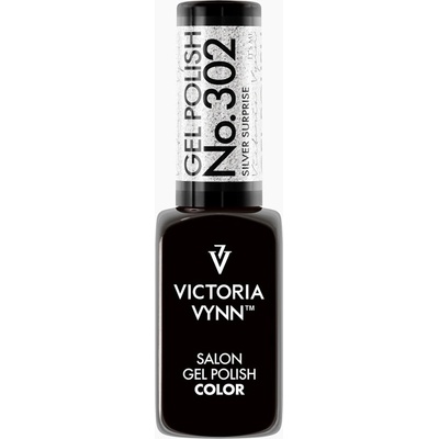 Gel lak 302 Silver Surprise od značky Victoria Vynn přináší sytý stříbrný odstín s metalickým leskem a jemnými mikročásticemi, které odrážejí světlo pro efekt tekutého kovu....