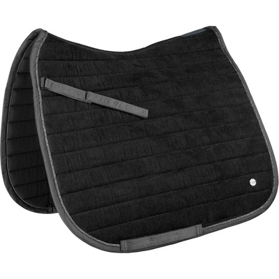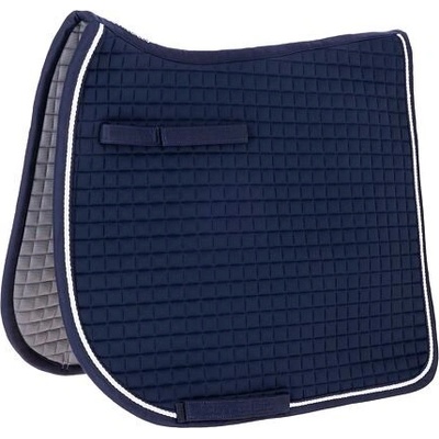 Elegantní drezurní podsedlová dečka s pěkným střihem. Podsedlovka má jemné kontrastní barevné lemování s krystaly a perlami pro luxusní vzhled.