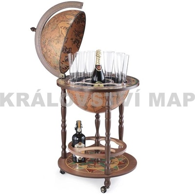 - celkové rozměry 50 x 50 x 93 cm - průměr koule 40 cm - mapová kresba v historizujícím stylu ze 16. století - uvnitř dlóbu lze skladovat lahve o průměru maximálně 8 cm