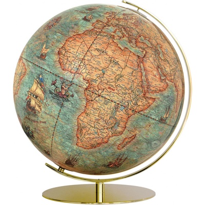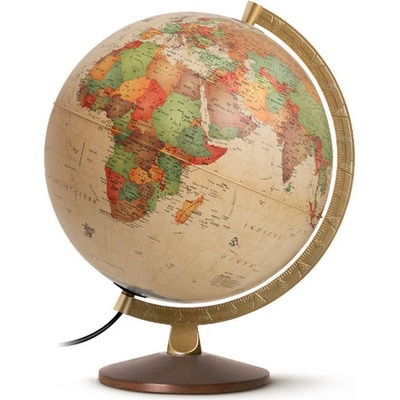 Světelný glóbus Ocra Soudobá politická mapa antického vzhledu s vyznačením plaveb dávných mořeplavců. Průměr 30 cm Výška 40 cm Měřítko 1:42 500 000 Kovový půlpoledník,...