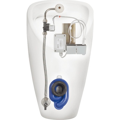 Urinál s integrovaným zdrojem 230V AC, vnitřní přívod vody Výrobek obsahuje keramická pisoár s úpravou Antibak radarový splachovač na montážní liště elektromagnetický ventil připojovací hadice rohový ventil s filtrem a zpětnou klapkou vtoková armatura s těsněním sifon...