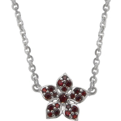 Stříbrná brož osazená pravými českými granáty. Ke každému šperku přikládáme certifikát pravosti a dárkovou krabičku. Český granát pochází z nalezišť Podsedice a Dolní Olešnice....