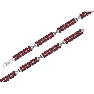 Stříbrný náramek osazený pravými českými granáty. Ke každému šperku přikládáme certifikát pravosti a dárkovou krabičku. Český granát pochází z nalezišť Podsedice a Dolní...